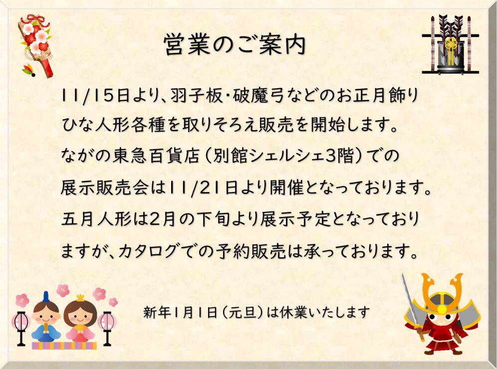 初代当主から受け継いだ二代目より、雛人形や五月人形などの節句人形を専門に扱う店となりました。