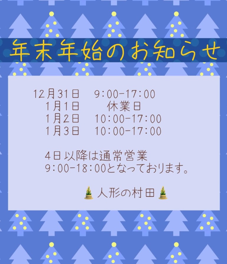 | 定休日 | 不定休 ※元旦は休業します(初売り1/2日10時~) 8/13日~10/31日までは準備期間に付き休業 |